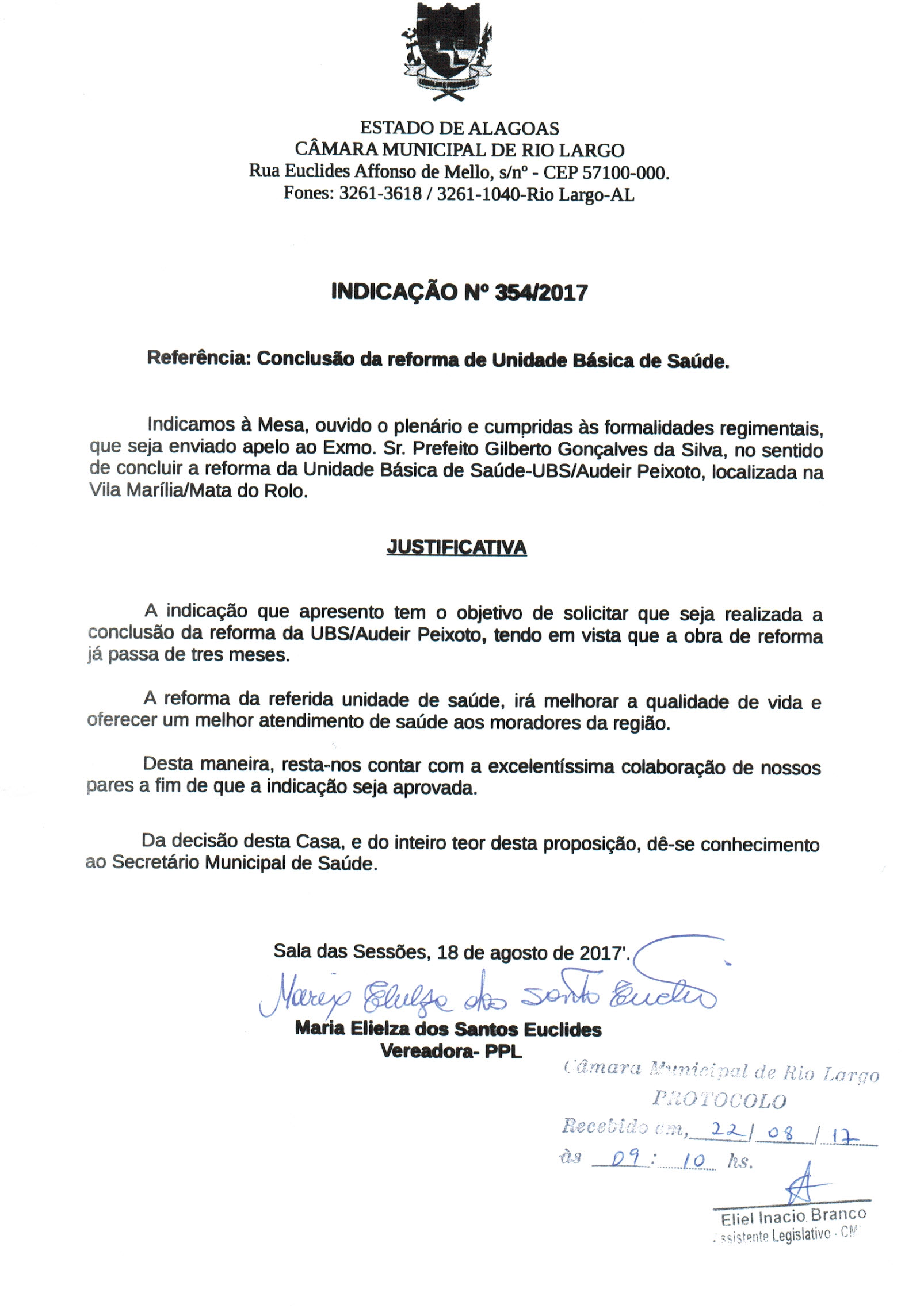 ![]() SOLICITA A EXCELENTÍSSIMA DRA. MARCLI GUIMARAES AGUIAR, JUIZA ELEITORAL DA 15ª ZONA ELEITORA/RIO LARGO POSSIBILIDADE DE INSTALAR POSTO PROVISÓRIO PARA EMISSÃO DE TÍTULO ELEITORAL PARA TENDER OS MORADORES DOS CONJUNTOS RESIDENCIAIS JARBAS OITICICA E ANTÔNIO LINS DE SOUZA, MATA DO ROLO.