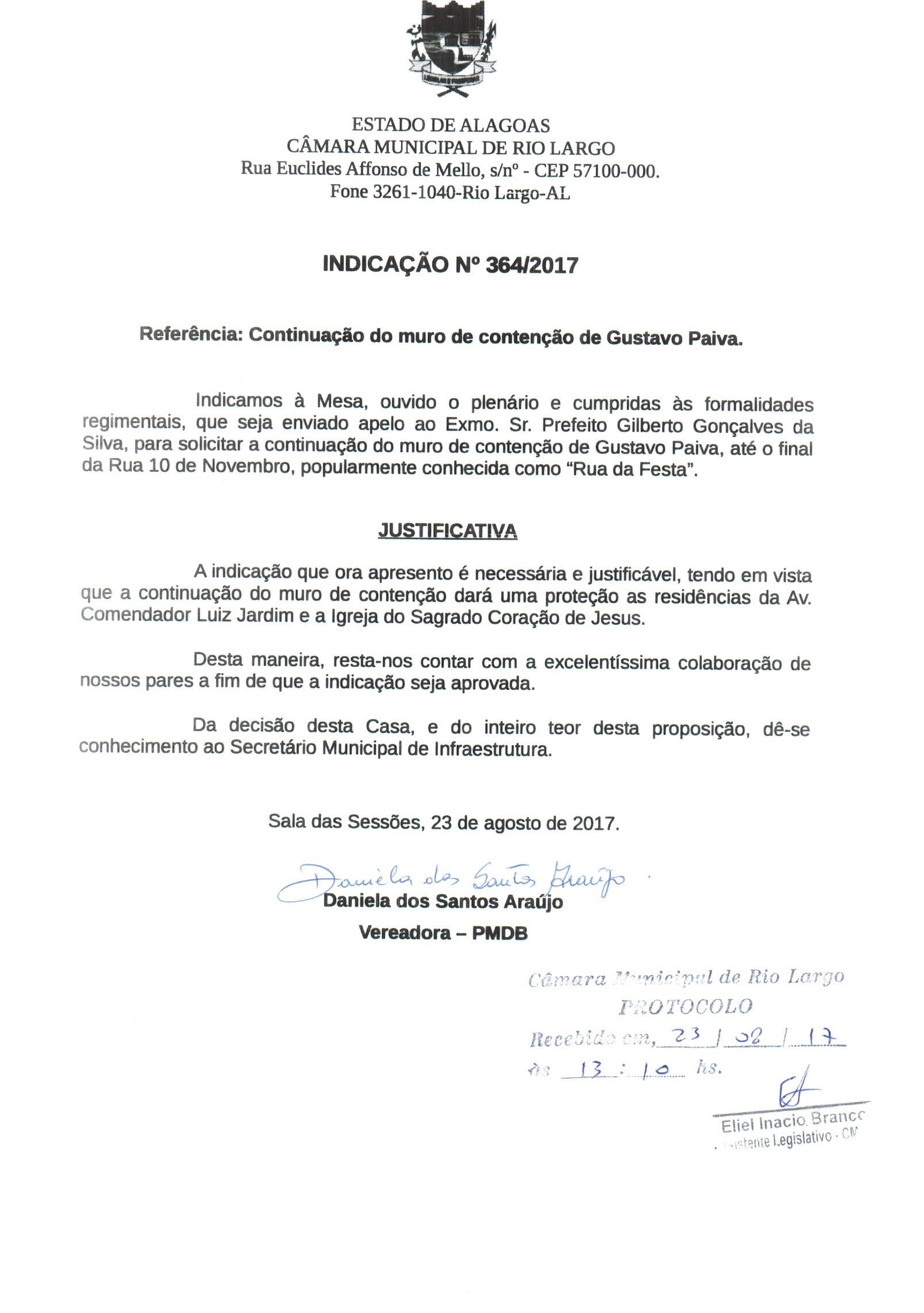 ![]() INDICAÇÃO Nº 347/2017.CONCLUSÃO DO CALÇAMENTO DA VILA MUNICIPAL.