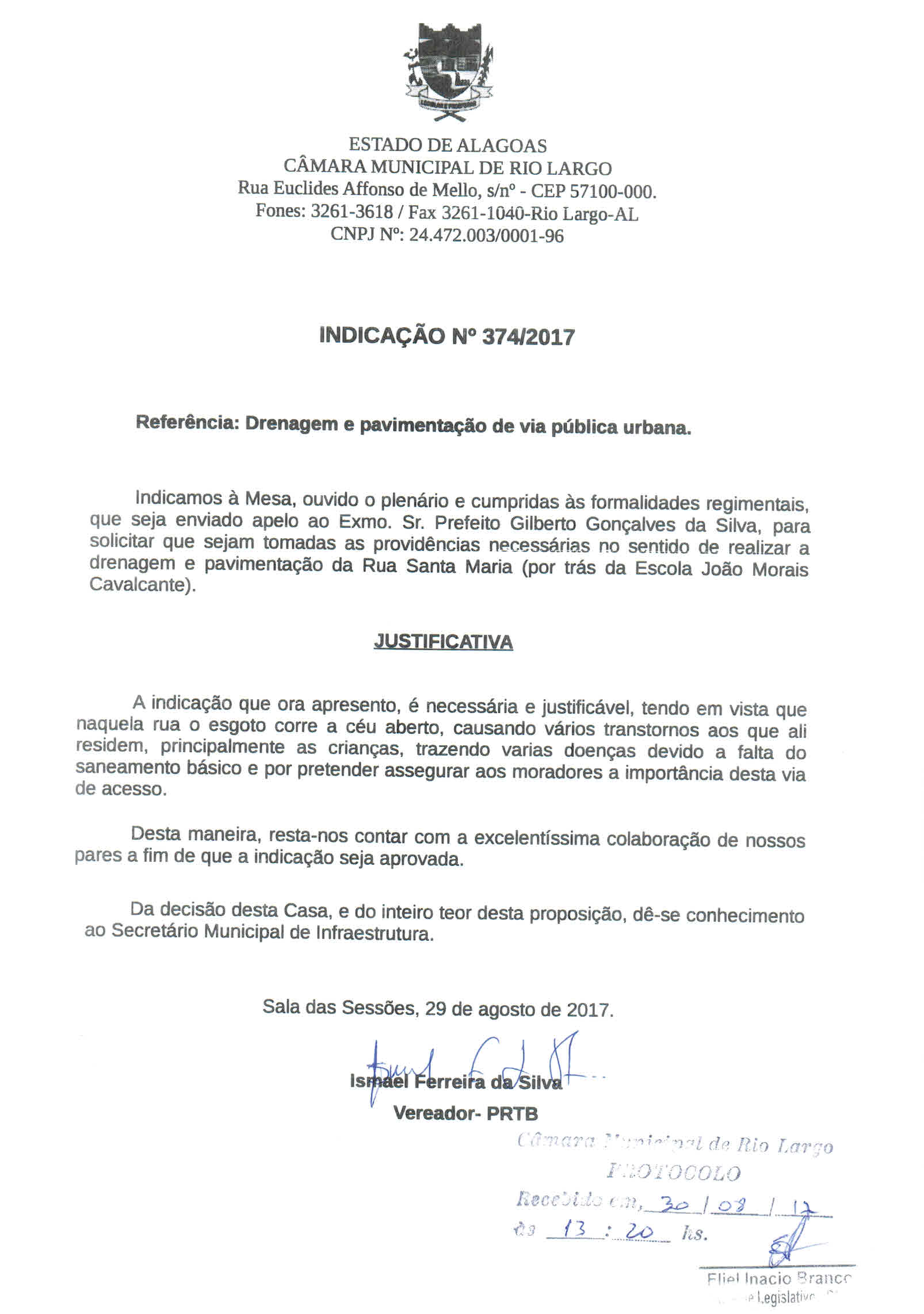 ![]() INDICAÇÃO Nº 343/2017. SOLICITA A DRENAGEM E PAVIMENTAÇÃO, COM CONSTRUÇÃO DE GALERIA DE ÁGUAS PLUVIAIS NA TRAVESSA JOSE MONTEIRO DE MELO.