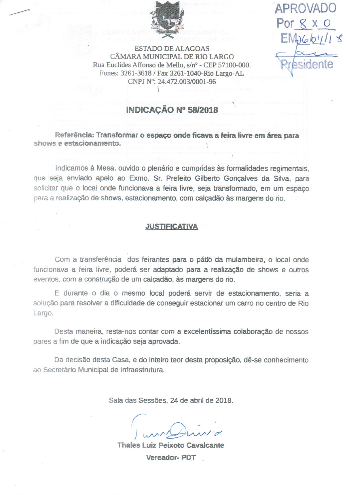INDICAÇÃO 58/2018 - TRANSFORMAR O ESPAÇO ONDE FICAVA A FEIRA LIVRE EM AREA PARA SHOWS E ESTACIONAMENTO. - |